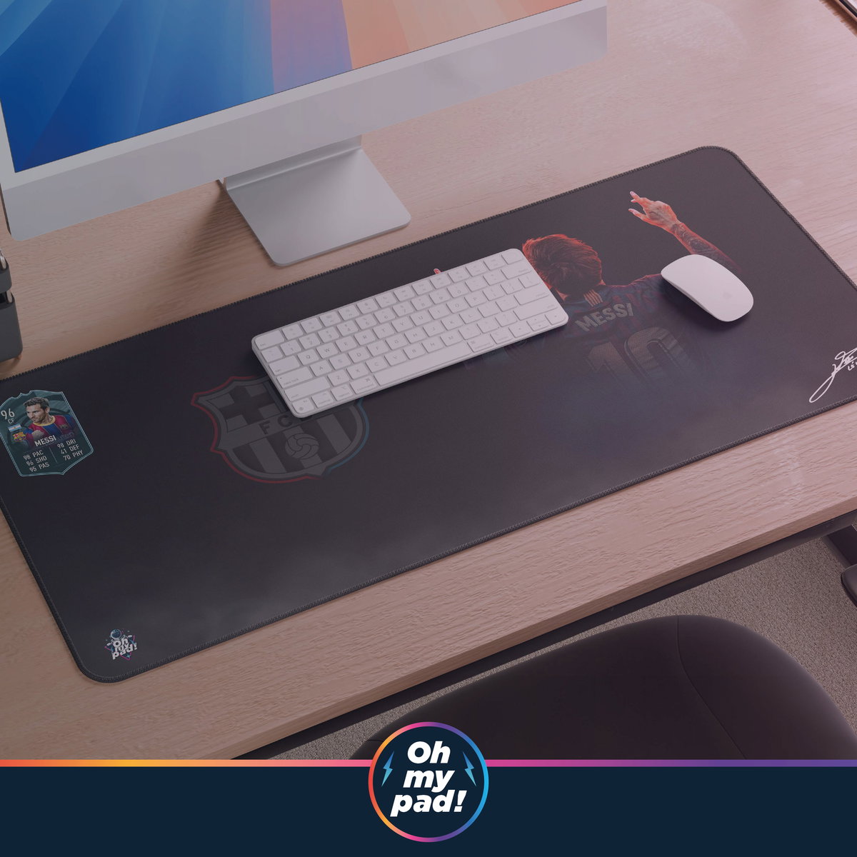 Mousepad XL 90x40 inspirado en Messi “La Pulga”, ideal para fanáticos del fútbol. Diseño impactante, superficie de alta precisión, base antideslizante y bordes cocidos. Perfecto para gaming o escritorio. Envíos a todo el país.